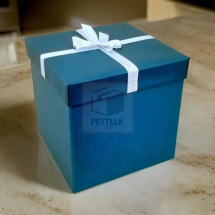 Blue Gift Box with Silver Ribbon Bow -Sleek & Sophisticated – 8 X 8 X 8